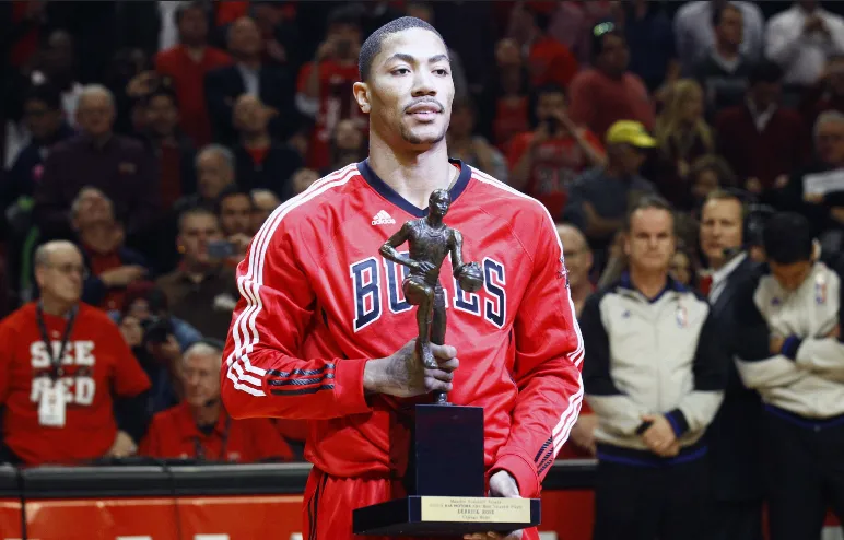 Rose’s career skyrocketed from the moment he entered the NBA. He earned the Rookie of the Year award in 2008-09 and two seasons later, in 2011, he became the youngest player to win the NBA MVP award at just 22 years old. His combination of speed, strength, and finesse redefined the point guard position, and he quickly became the face of the Chicago Bulls, earning three All-Star selections in his first four seasons.