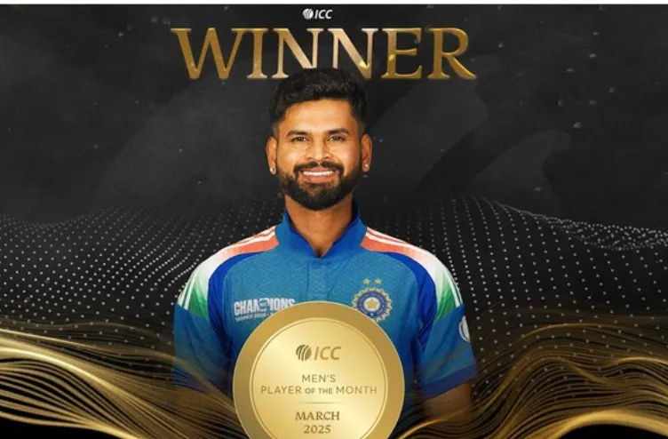 Cricket Players Shreyas Iyer Wins ICC Player of the Month for March 2025 April 15, 2025 - Updated on September 3, 2025 2