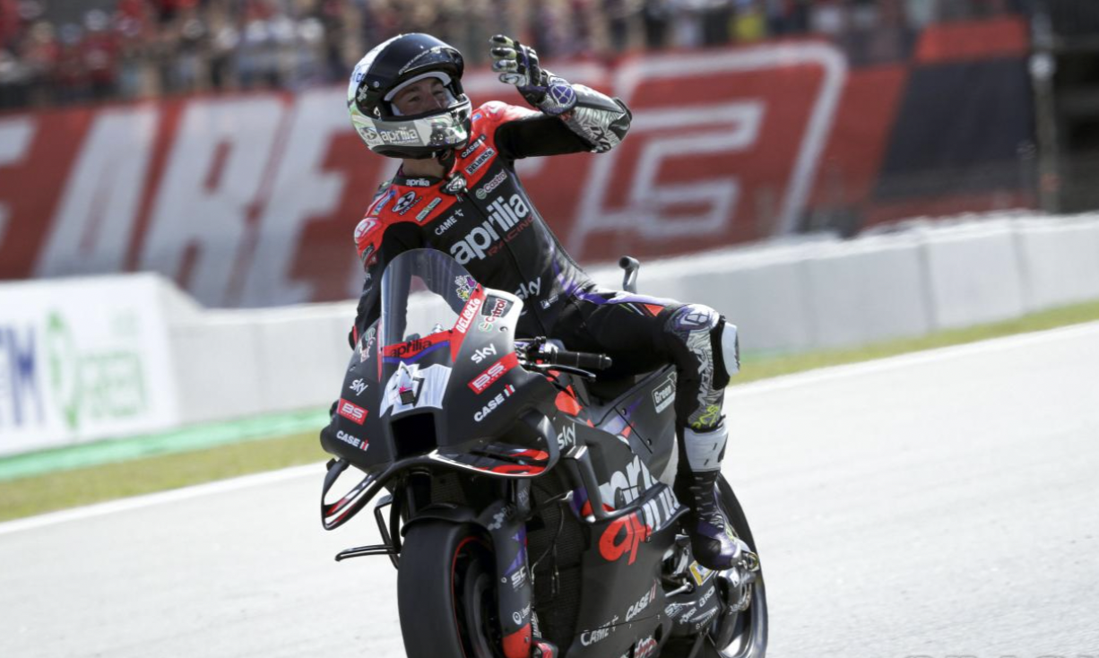 Aleix Espargaro continued his dream home weekend, after announcing his retirement at the end of this year, by securing pole position for the 2024 Catalan MotoGP. The Aprilia star, who won both races last year, claimed pole by a mere 0.031s over reigning champion Francesco Bagnaia. Bagnaia’s best lap, a ‘pole’ time of 1m 38.128s, was invalidated due to yellow flags.